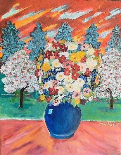 Het lied Moscow night heeft mij geïnspireerd tot het maken van het schilderij links. Ik was driemaal op het rode plein.