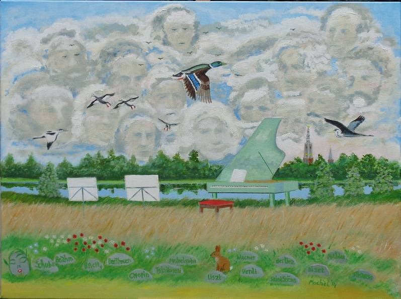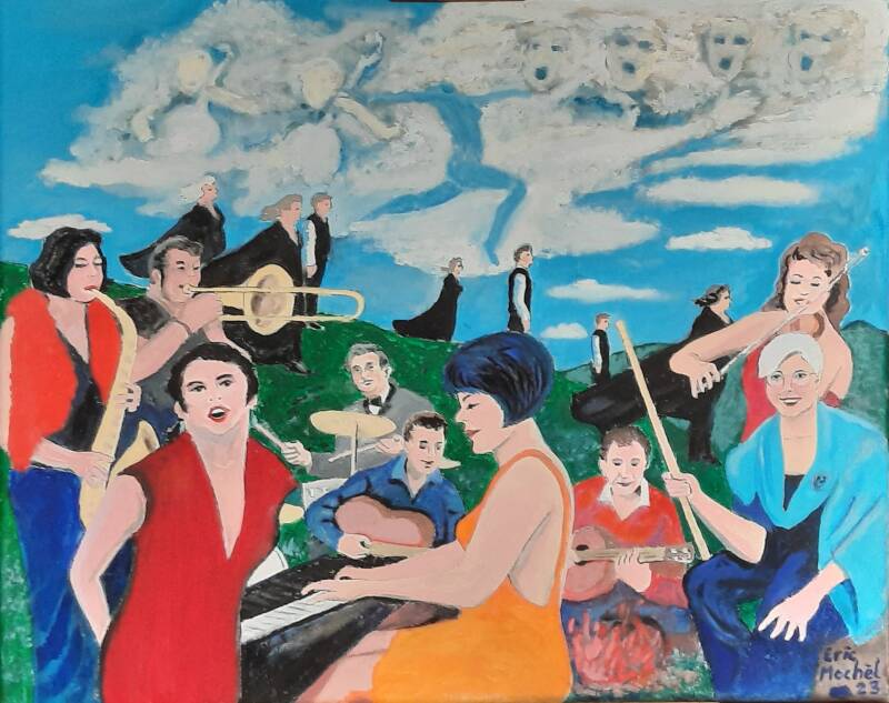 Dit schilderij is een collage van muzikanten die bij mij om meerdere redenen hoog staan aangeschreven. Toegevoegd bijpassende muziek.
