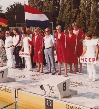 De mannenvolleybalploeg ging in 1975 naar Praag Met dameszwemploeg naar Oswiecim (Auswitz) 1979