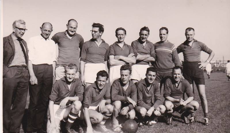Het Spoorteam in 1960 met onze trainer de befaamde Jan Stender
