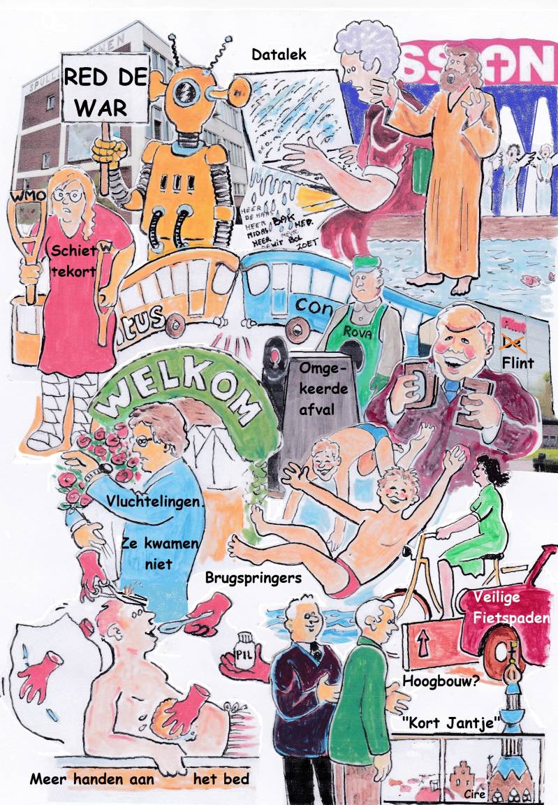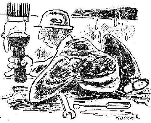 Ook de redactie van het personeelsblad "De Koppeling" van de Spoorwegen zag perspectieven in mij. Honderden cartoons heb ik voor ze gemaakt. Vrijdags werd ik gebeld wat er de volgende week in "De Koppeling" zou komen. Dan begonnen meteen de radertjes te werken want een cartoon bestaat voor 90% uit inspiratie en voor 10% uit transpiratie. 's Maandags 12.00 uur moesten de tekeningen (ik maakte er meestal drie, want ik was altijd onzeker of ze wel goed waren) op het bureau zijn. Wat had ik toen graag E-mail gehad.