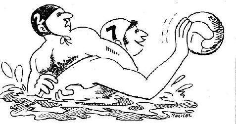 Dit is mij als jongetje overkomen. De aspiranten tegen Dames 1. Ik zwom horizontaal naar voren, kop onder water, zo bij een speelster haar badpak in. Wij kwamen beiden verticaal te liggen en zie dan maar je arm te bevrijden. Zij zat er niet mee.
